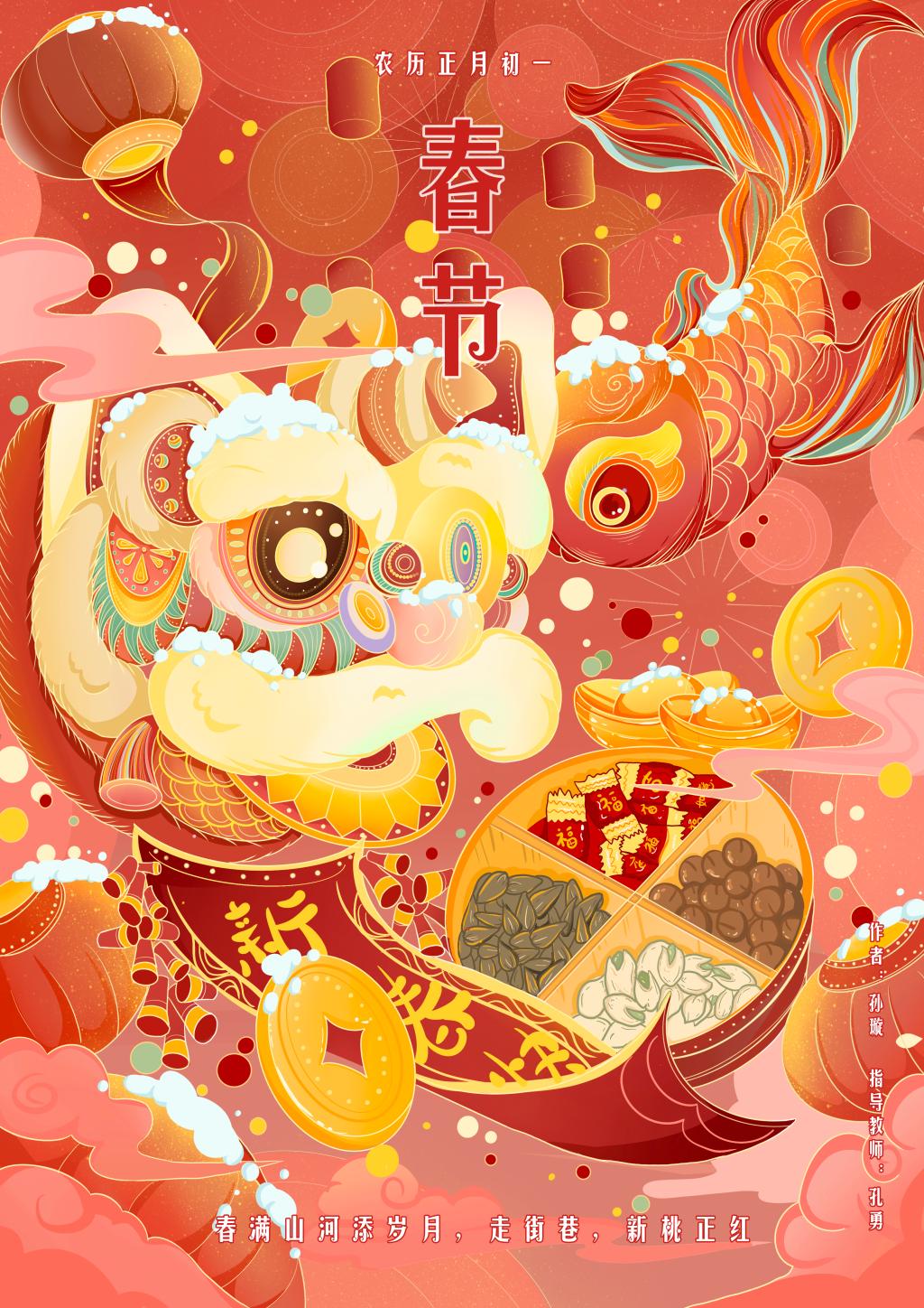 曲阜师大传媒学院讯 为进一步传承中华优秀传统文化,挖掘中国传统节日内涵魅力,近期,曲阜师大传媒学子以“绘传统节日历久弥新 展青年担当薪火相传”为主题,选取春节、元宵节等十五个中国传统节日进行系列原创数字插图作品创作。本次活动由传媒学院党委策划组织,数字媒体艺术系副主任孔勇指导创作。