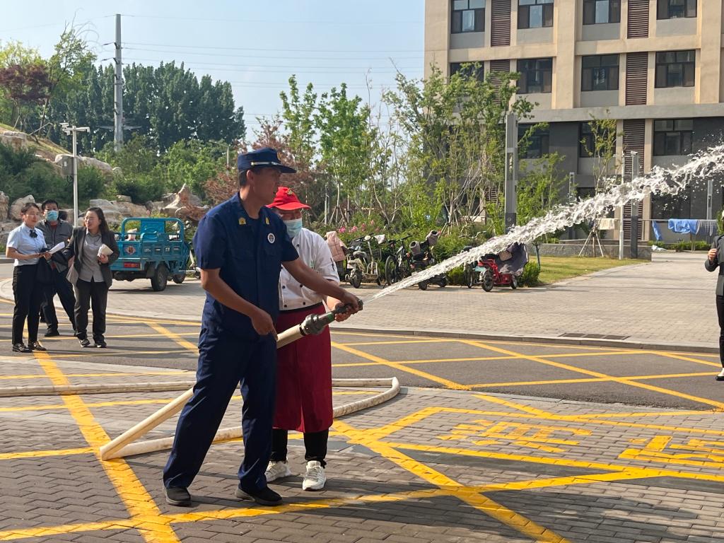 王磊首先从实用消防法律法规、消防安全隐患识别与消除、消防安全技能实操、消防安全培训组织与实施等四方面开展了消防技能培训与知识考核。模拟现场实操环节,所有人员在消防员的专业指导下现场操作演练了消防栓及灭火器的使用,做到了掌握要领、操作规范,达到了预期效果。