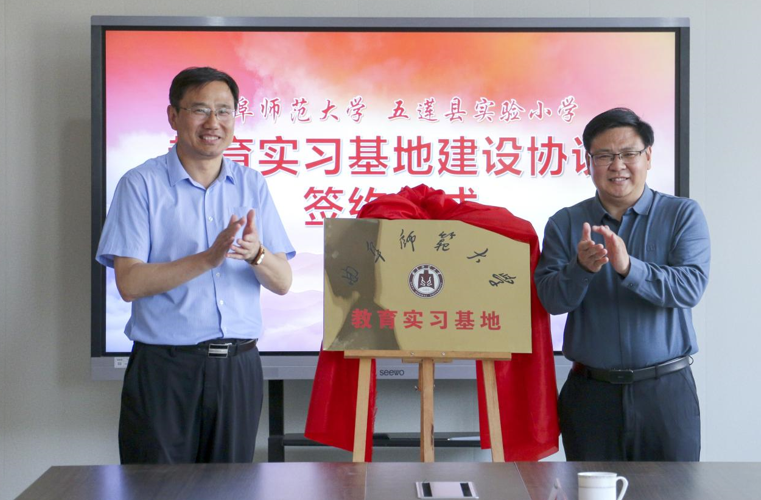 张明洁分别与济宁一中任城校区执行校长房晓辉、五莲县实验小学校长陈祥权、五莲中学校长魏本福签订“LD平台_LD(中国)一站式服务官网学生实习基地”协议。张明洁、李光顺与各学校校长共同为基地揭牌。