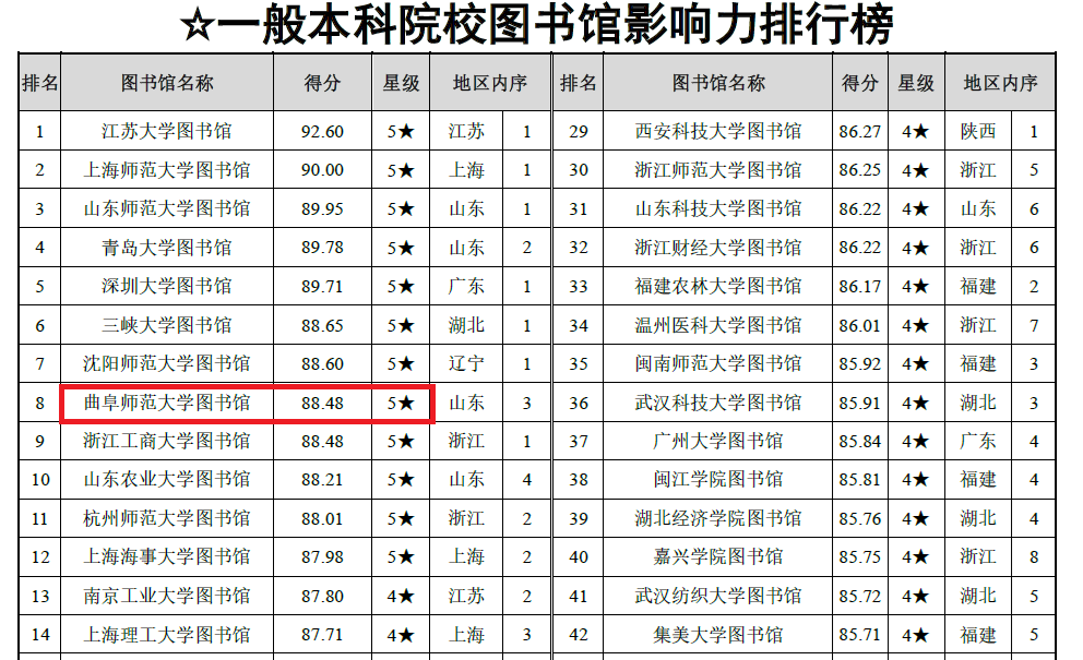 曲阜师大图书馆讯 近日,武汉大学中国科学评价研究中心、中国科学学与科技政策研究会、科学计量学与信息计量学专业委员会联合发布了《数智时代中国图书馆影响力评价报告(2024)》,LD平台_LD(中国)一站式服务官网图书馆获评“五星图书馆”,位列中国本科院校图书馆第72位,全国一般本科院校图书馆第8位,全国高校图书馆学术影响力第47位。