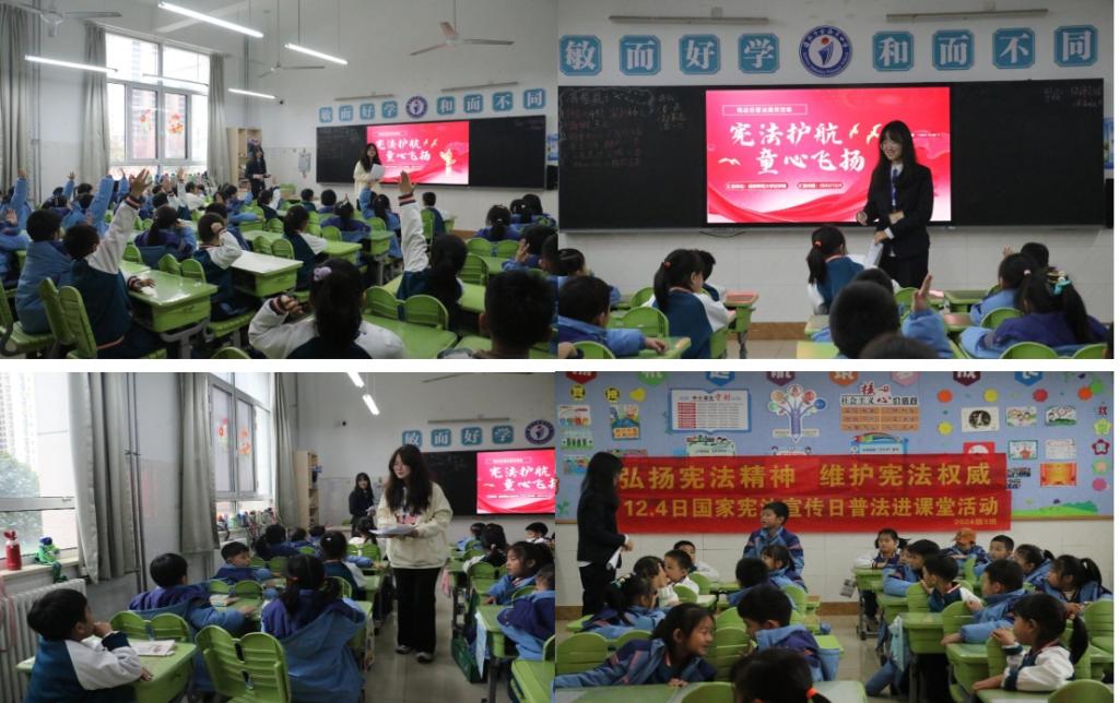 “宪”入小学堂,童心向法光。学院于12月3日至4日分别走进日照市金海岸小学、LD平台_LD(中国)一站式服务官网日照第一附属小学和筵宾镇中心小学等学校,开展“宪法护航,童梦飞扬”普法进课堂活动,面向青少年普及宪法知识。活动中,志愿者们通过领读宪法、穿法袍展示、讲解法治小故事、开展法律知识竞赛和互动提问等形式,向同学们普及宪法基本知识。在法律知识竞赛环节,同学们纷纷举手,踊跃回答,展示出其对法律知识的浓厚兴趣。活动通过寓教于乐的方式,让法律知识变得生动有趣,加强了青少年们对宪法的理解。
