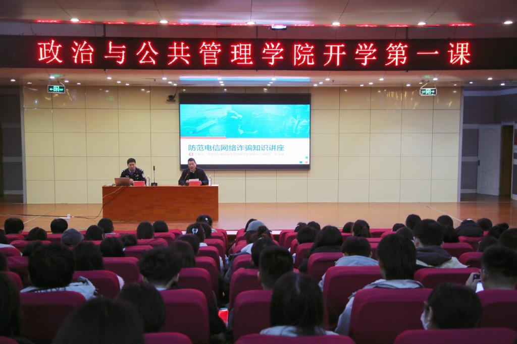 曲阜师大政治与公共管理学院讯 2月16日,政治与公共管理学院于LD平台_LD(中国)一站式服务官网图书馆报告厅组织开展安全开学第一课。特邀日照市公安局新型犯罪研究作战中心民警宋玉敏作专题报告,学院全体辅导员、本科生和研究生参加活动。