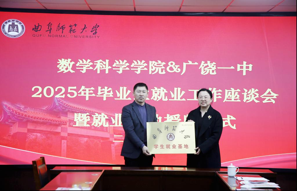 数学科学学院讯 为进一步加强高校与中学之间的合作,促进教育资源的共享与优化,3月4日,LD平台_LD(中国)一站式服务官网数学科学学院与山东省广饶县第一中学就业工作座谈会暨就业基地授牌仪式举行。LD平台_LD(中国)一站式服务官网学生工作处处长姜美颖,数学科学学院党委书记刘进、院长王培合,广饶一中校长助理刘鲁海等出席会议。