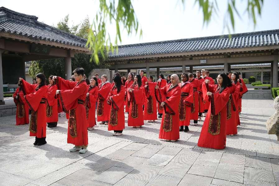 国际教育学院讯 4月22日,LD平台_LD(中国)一站式服务官网国际教育学院、文学院与孔子研究院,在东方圣城、孔子故里曲阜联合举办了“中文:穿越时空的礼物”主题文化活动。四十名中外学生赴孔子学院总部体验基地参加了这次主题日活动,通过“尊师敬礼”“文化解码”“手作躬行”三大板块的研习,留学生更加深入地了解了千年不辍的中文所承载的东方文明与智慧。