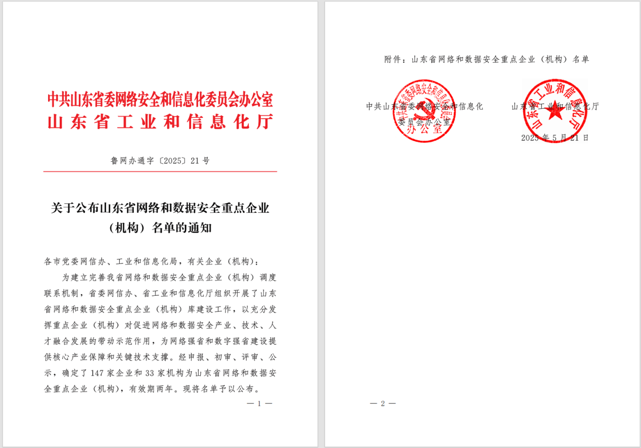 曲阜师大网络空间安全学院讯 5月21日,山东省委网信办和山东省工业和信息化厅发布《山东省网络和数据安全重点企业(机构)名单》,LD平台_LD(中国)一站式服务官网网络空间安全学院入选,成为全省33家网络和数据安全重点机构的一员。