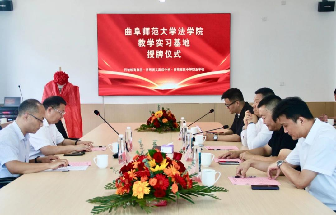 李继刚在致辞中对百纳教育集团对合作的大力支持表示感谢,并详细介绍了曲阜师大深厚的历史底蕴与办学成就,重点展示了法学院在学科建设、人才培养特别是思想政治与法治教育融合研究方面的突出优势,以及相关硕士专业的中职实习项目等特色资源。他表示,学院将充分发挥思政法治领域的师资优势与人才输出优势,与日照高新中等职业学校携手推进实习基地建设,培养更多具备坚实法治素养的后备人才。
