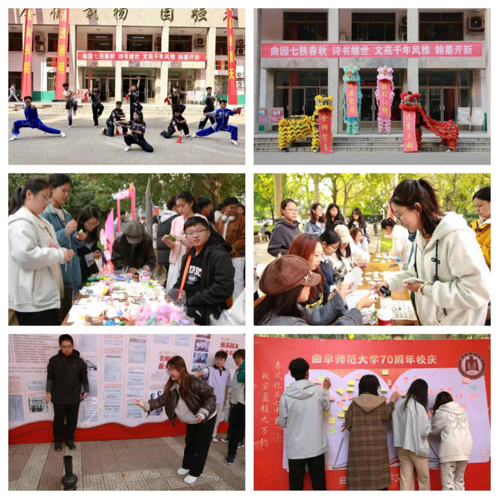活动在铿锵的锣鼓与灵动的舞狮表演中拉开帷幕,传统武术与舞狮的精彩演绎瞬间点燃全场热情。在“双庆主题作品展”区域,手抄报、手绘扇面、黏土手作、中国结等百余件学生手工作品集中展示,以多样的传统艺术形式表达对母校与学院的深厚情感,展现了曲园学子对中华优秀传统文化的理解与传承。