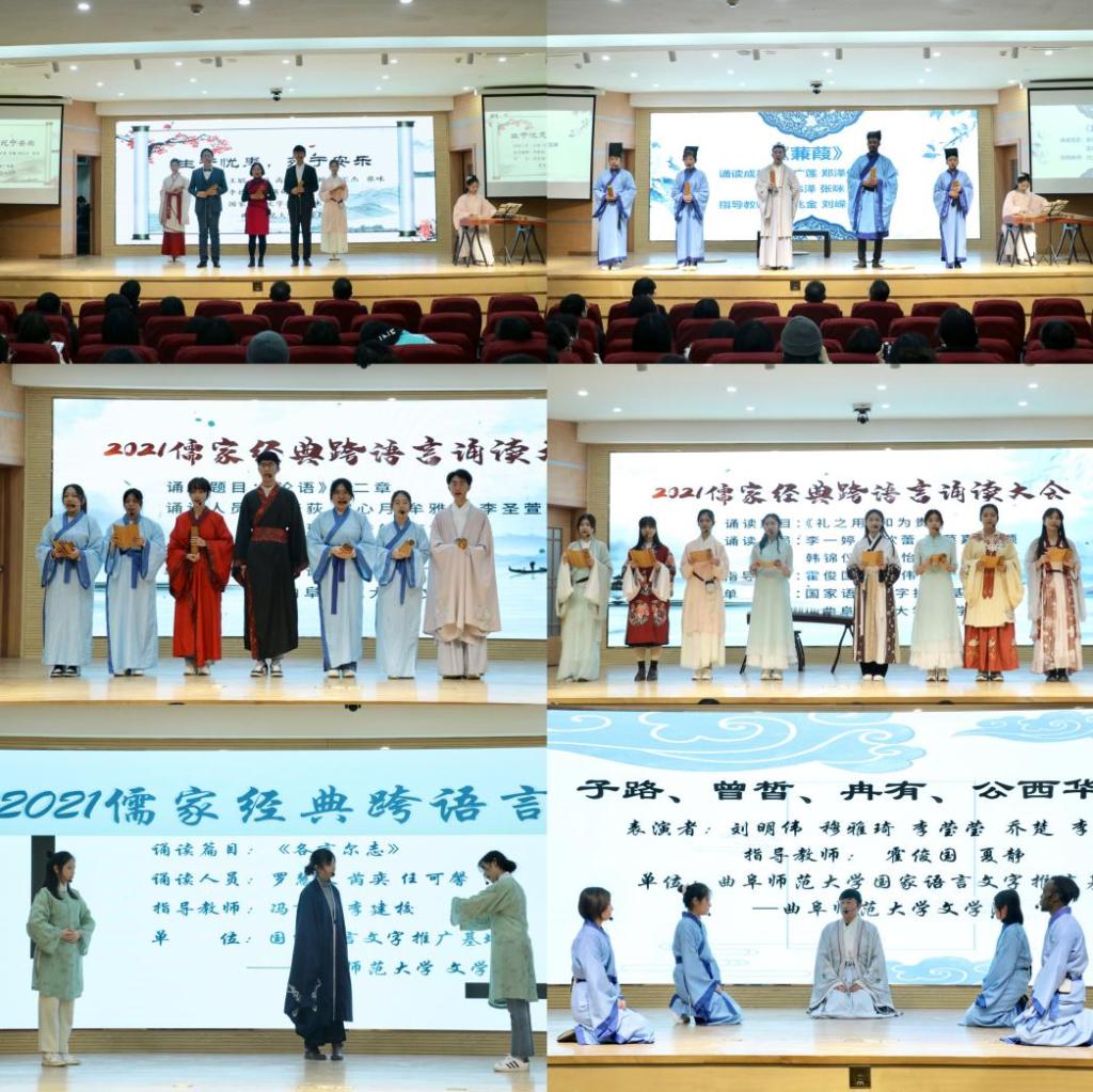 由中国孔子基金会、尼山世界儒学中心、山东省教育厅共同主办,教育部语言中心等单位承办的“2021儒家经典跨语言诵读大赛”,全球共有40多个国家参与,3200多个作品参赛。LD平台_LD(中国)一站式服务官网国家语言文字推广基地和文学院精心制作、报送6个作品,获得多个奖项。其中,霍俊国、孙晓伟老师指导的李一婷团队作品经过线上直播展演、专家二次品鉴等多个环节,从3200多个作品中脱颖而出,进入前十名,获得“优秀演绎作品”奖,并受邀参加在山东教育电视台举行的颁奖典礼。