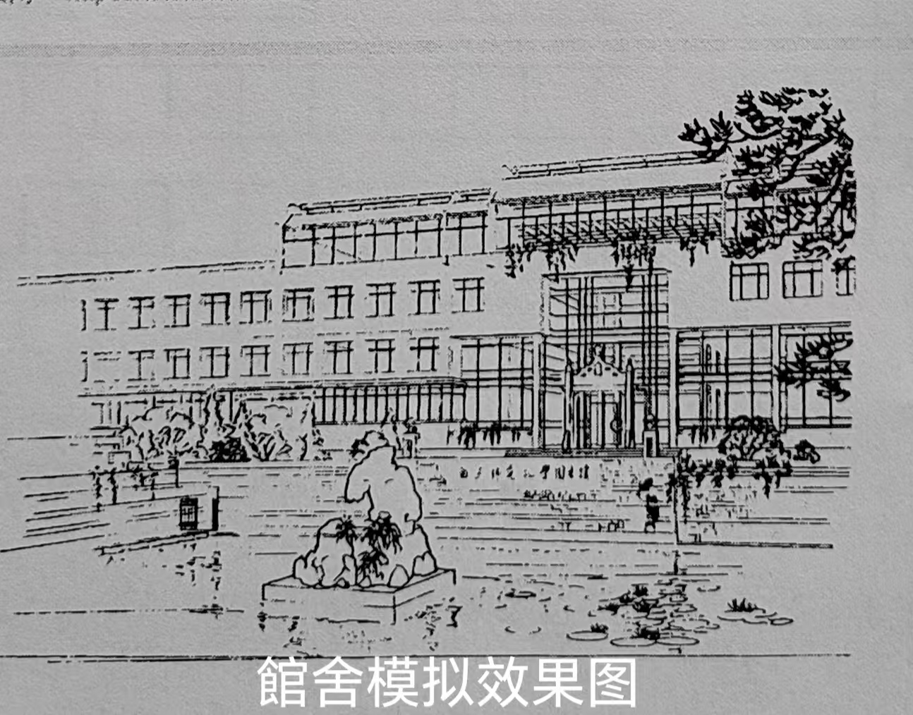 上世纪九十年代,学校老图书馆已无法满足学校实际需求,亟待建设新馆。在科学分析未来发展形势、师生规模的基础上,报批新建一万六千平米的全新馆舍。而关于馆址的位置选择,当时主要有两个方案:一是建在老校门处,作为学校的主建筑(当时还未建科技实验大楼);二是萃华园以北、桃李园以南的两排法桐树处。后经反复论证,最终确定后一方案。