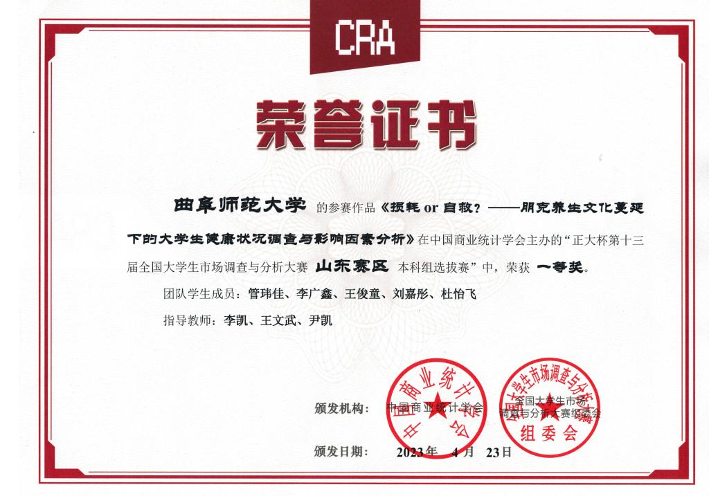 科研竞赛方面,我指导学生获得第十三届全国大学生沙盘模拟经营大赛全国总决赛一等奖、国家级全国大学生创新创业训练计划项目、第十三届全国大学生市场调查与分析大赛山东赛区本科组一等奖等省级以上竞赛获奖8项。社会实践方面,我获得2020、2021年LD平台_LD(中国)一站式服务官网“镜头中的三下乡”社会实践活动优秀指导老师,指导队伍分别获2021、2022年LD平台_LD(中国)一站式服务官网寒假社会实践校级一等奖。学术论文方面,我指导的本科论文获得2020年度LD平台_LD(中国)一站式服务官网优秀学士学位论文,2022年至2023年指导本科生完成学术论文5篇,已发表4篇。在我指导的2023、2024两届本科生中,有8人成功保研或考研,其中6人被录取到中国人民大学、北京工业大学等双一流高校,1人被东北财经大学录取,1人被圣安德鲁斯大学录取。