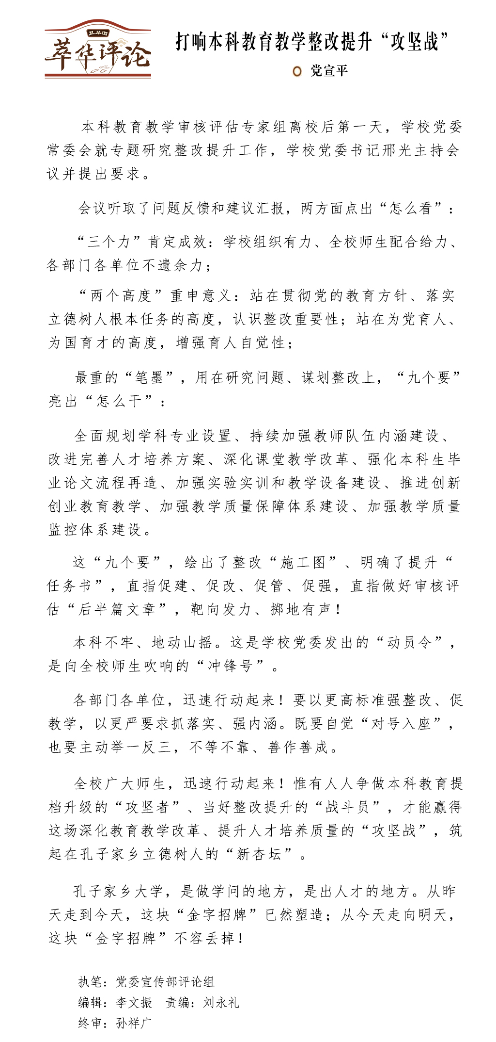 打响本科教育教学整改提升“攻坚战”