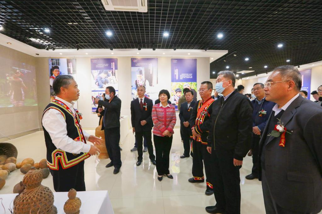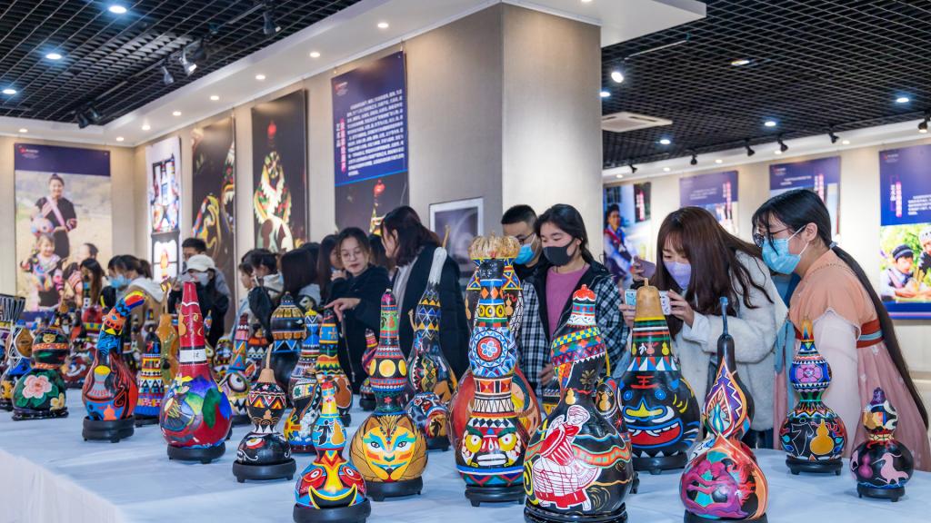 曲阜师大新闻中心讯 “太漂亮了,能看到这么多精美的葫芦艺术作品,是一次很愉快的体验和享受……” 10月18日上午,临沂市文化馆、临沂市文化中心展厅内热闹非凡,国家艺术基金资助项目“从葫芦里走出来的民族——拉祜族葫芦艺术作品巡展”走进沂蒙革命老区,在临沂市文化中心一层北大厅隆重开幕。国家非物质文化遗产“拉祜族芦笙舞”表演,一百余个彩绘葫芦,八十余幅葫芦绘画作品,近百幅葫芦文化传播作品,获得国家专利的当代拉祜布艺葫芦,与沂蒙山“葫芦崖”上的古老美丽传说在这里邂逅,共同“讲述葫芦故事,传承中华文化”,还有形态各异的葫芦乐器、葫芦盛器等精彩呈现,为临沂市民带来了一场极具冲击力的文化体验与艺术享受。