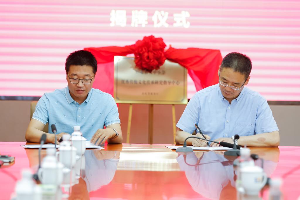 仪式上,陈成标与曲阜师大优秀传统文化教育中心主任范兆东,分别代表省教育厅和学校,签订了《山东省大中小学优秀传统文化传承研究指导中心项目协议书》。
