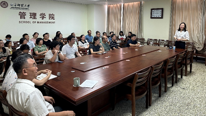 报告末尾,刘洪霞教授对中国高等教育学会主办的教学创新大赛的比赛宗旨、比赛目标和参赛要求进行了梳理和阐释,并与参会人员分享了自己参赛的报告撰写、课程建设汇报、课堂教学视频录制等方面的经验。最后,她还就智慧化教学、混合式教学以及教学创新实践等内容与参会教师进行了热烈讨论和深入交流。