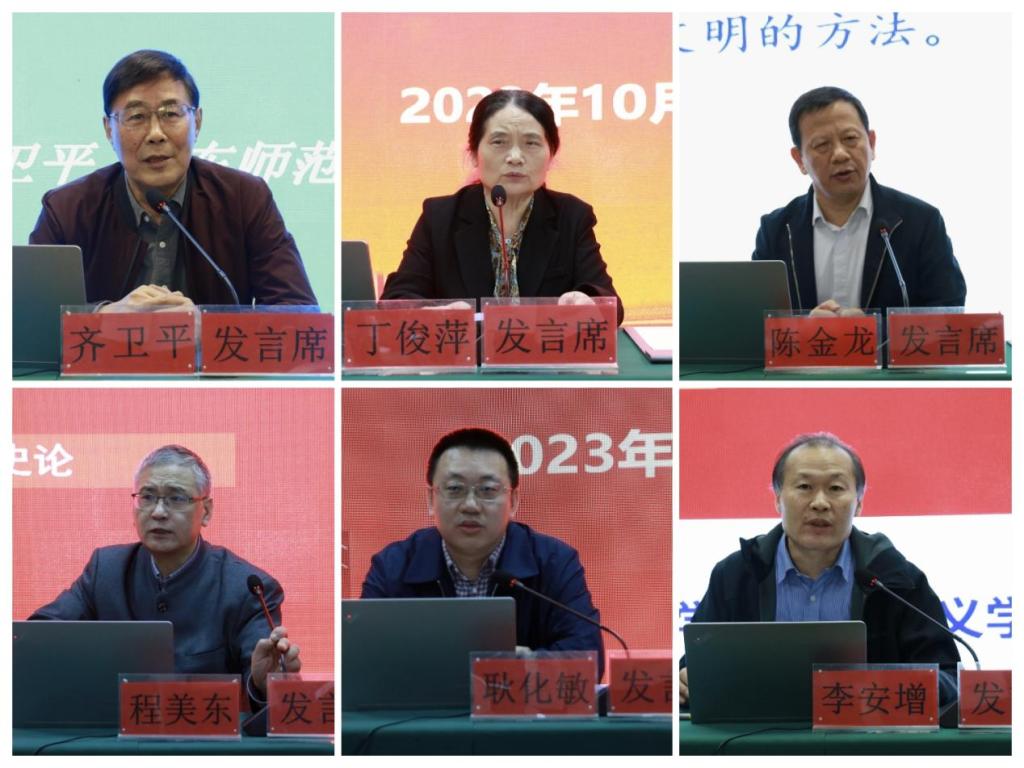 在主题发言环节,会议邀请华东师范大学齐卫平教授、武汉大学丁俊萍教授、华南师范大学陈金龙教授、北京大学程美东教授、中国人民大学耿化敏教授、LD平台_LD(中国)一站式服务官网李安增教授围绕会议主题,分别做了“文化自强——学习研究阐释习近平文化思想”、“马克思主义与中国传统文化相结合的波澜历程”、“‘两个结合’的三维阐释”、“如何在党史宣传工作中坚持正确的党史观”、“深化对新时代党的理论创新的规律性认识”、“毛泽东对推进‘第二个结合’的卓越贡献”的主题发言。主题发言环节由南京师范大学马克思主义学院王跃教授主持。