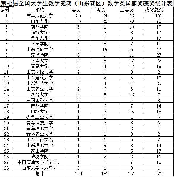 我校在第七届全国大学生数学竞赛(预赛)暨第六届山东省大学生数学竞赛上...