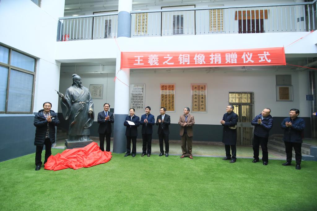 山东省书法家协会常务副主席孟鸿声为我校捐赠“王羲之”铜像
