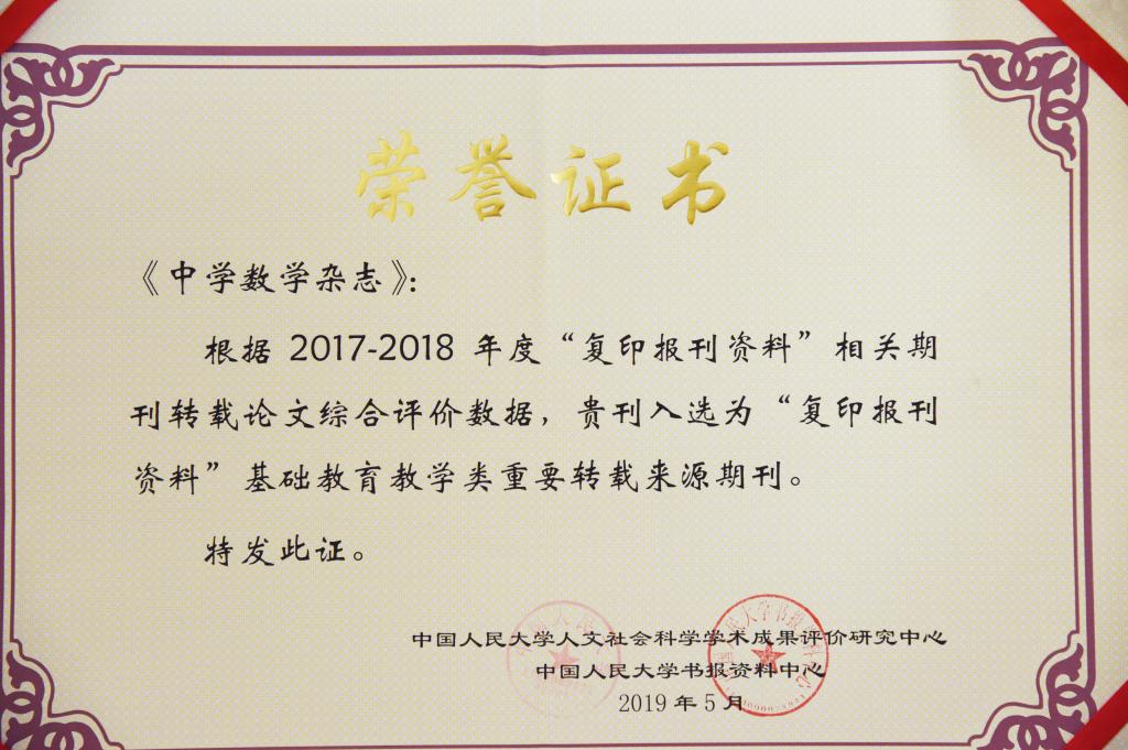 《中学数学杂志》再次入选“复印报刊资料重要转载来源期刊”