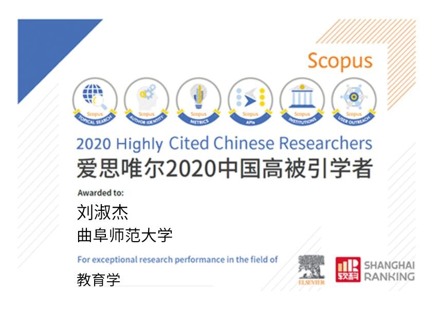 刘淑杰教授入选爱思唯尔2020“中国高被引学者”榜单