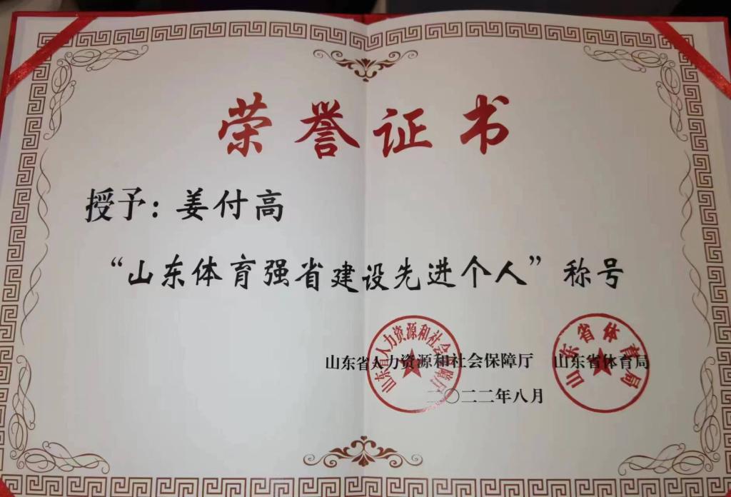 曲阜师大姜付高教授荣获“山东体育强省建设先进个人”荣誉称号