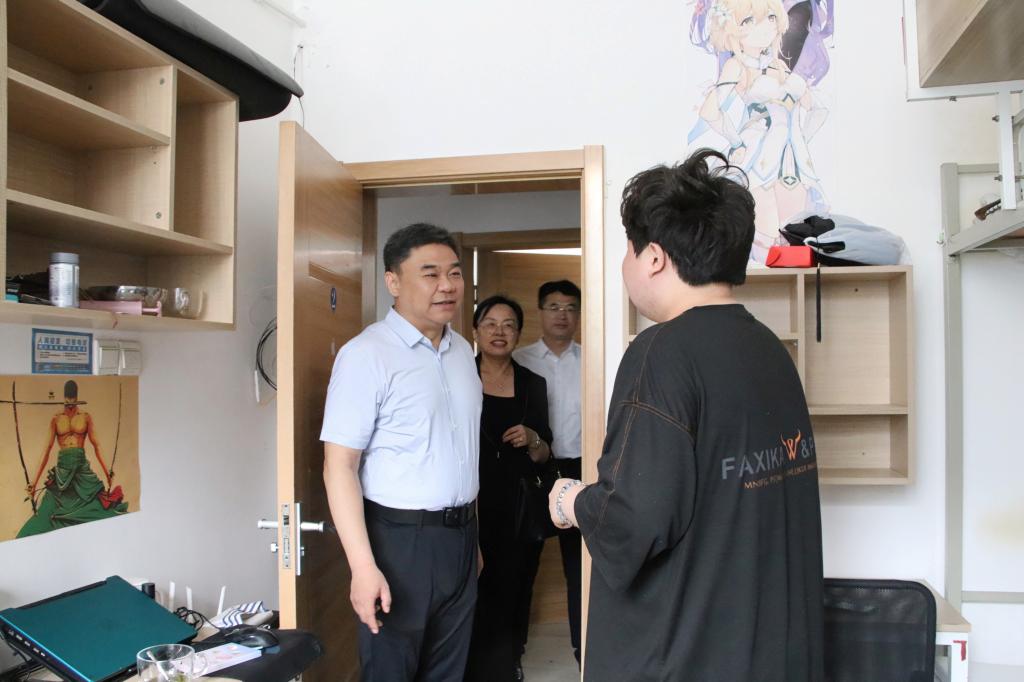曲阜师大日照校区办公室讯 6月19日上午,学校党委书记邢光、党委副书记、校长张洪海,党委副书记卢国强深入两校区学生宿舍,看望慰问毕业生,检查指导毕业生服务保障工作。“家是哪里的呀?”“坐高铁回...