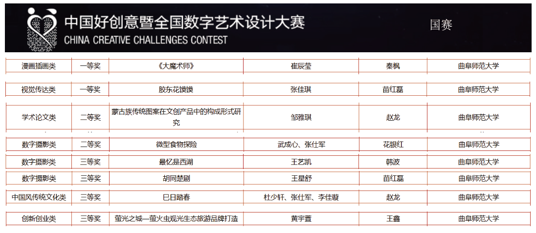 曲阜师大师生在第18届中国好创意暨全国数字艺术设计大赛中获佳绩